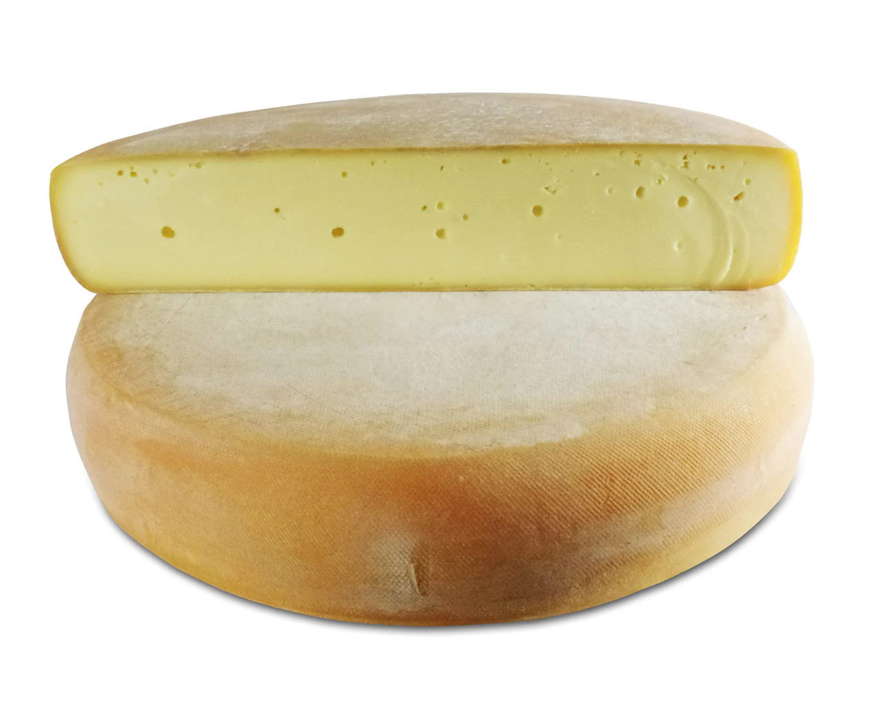 Produced in La Savoyarde, nestled in the Savoie Mountains, our Raclette is made from the thermised cow’s milk collected from the neighbouring farms. It is matured on spruce for at least 8 weeks. The wood gives the cheese a nuttier flavour, and it helps regulate the moisture of the rind. Although perfectly enjoyable when eaten cold, the Raclette cheese truly reveals itself when melted as part of the famous eponymous dish: “Raclette”. It is a traditional Swiss meal cooked by heating the cheese either in front of a fire or by a special machine and scraping (“racler” in French, giving the name raclette) the melted cheese onto potatoes and cured meats. A simple and perfect meal to be shared with family and friends!