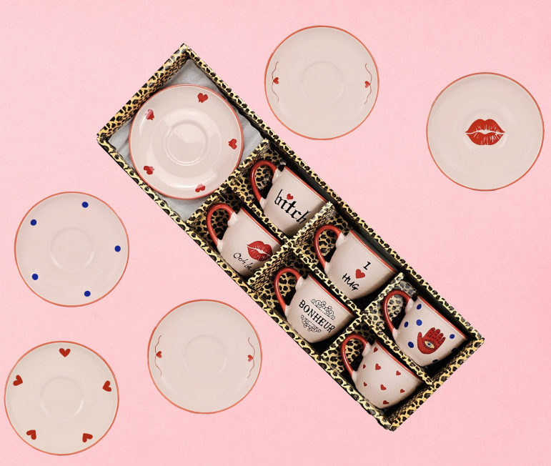 Why settle for boring coffee? Wake up with a dose of personality using this eclectic 6-piece espresso set. Each cup features a unique design ranging from the romantic (“Bonheur,” “Ooh La La”) to the protective (Hamsa Hand) and the totally cheeky (“Bitch”). Packaged in a stunning leopard-print gift box, this set is the ultimate gift for the friend who is a little bit sugar and a little bit spice.